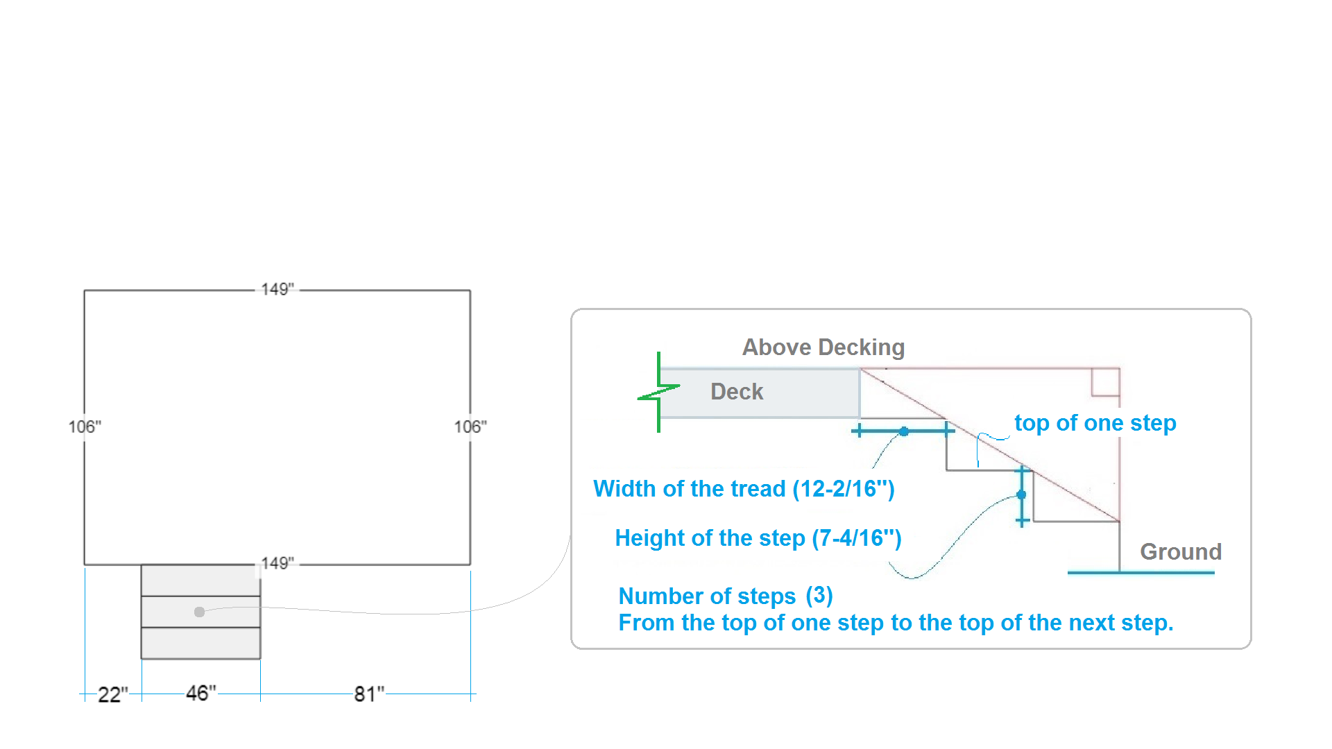 Arrow 1 = Enter the number of steps. The width of the tread. As well as the height of the step, that is, from the top of one step to the top of the next step.