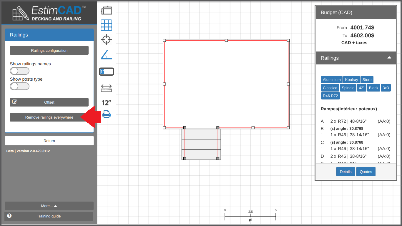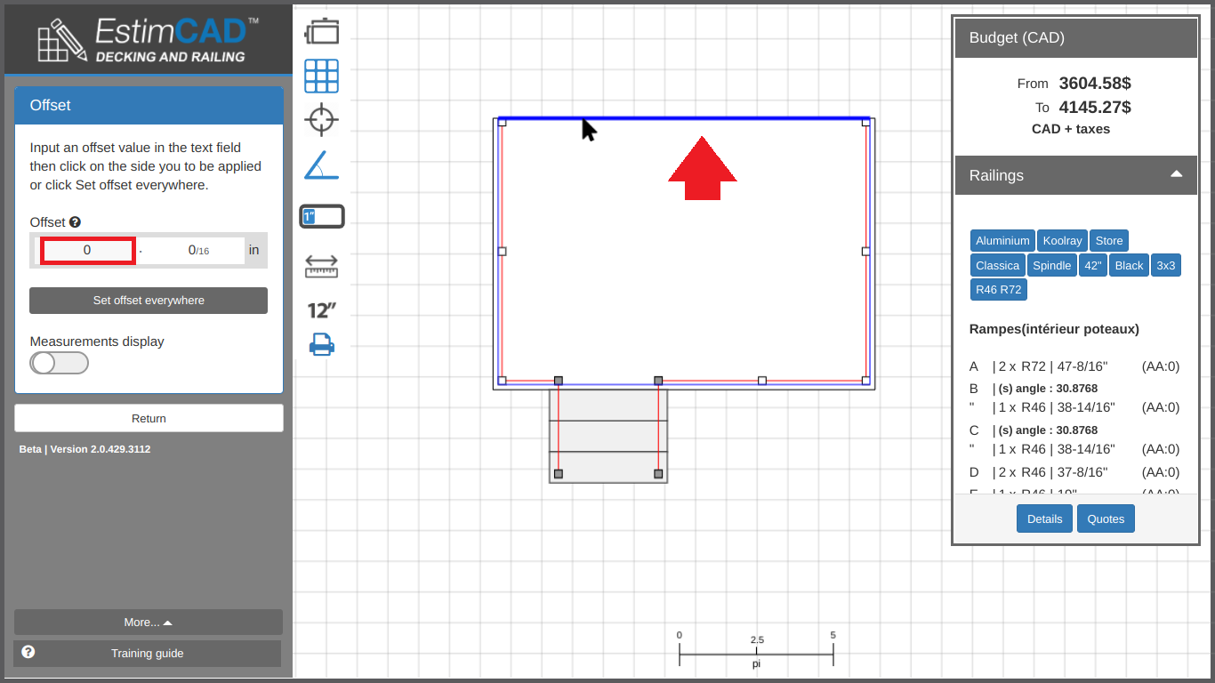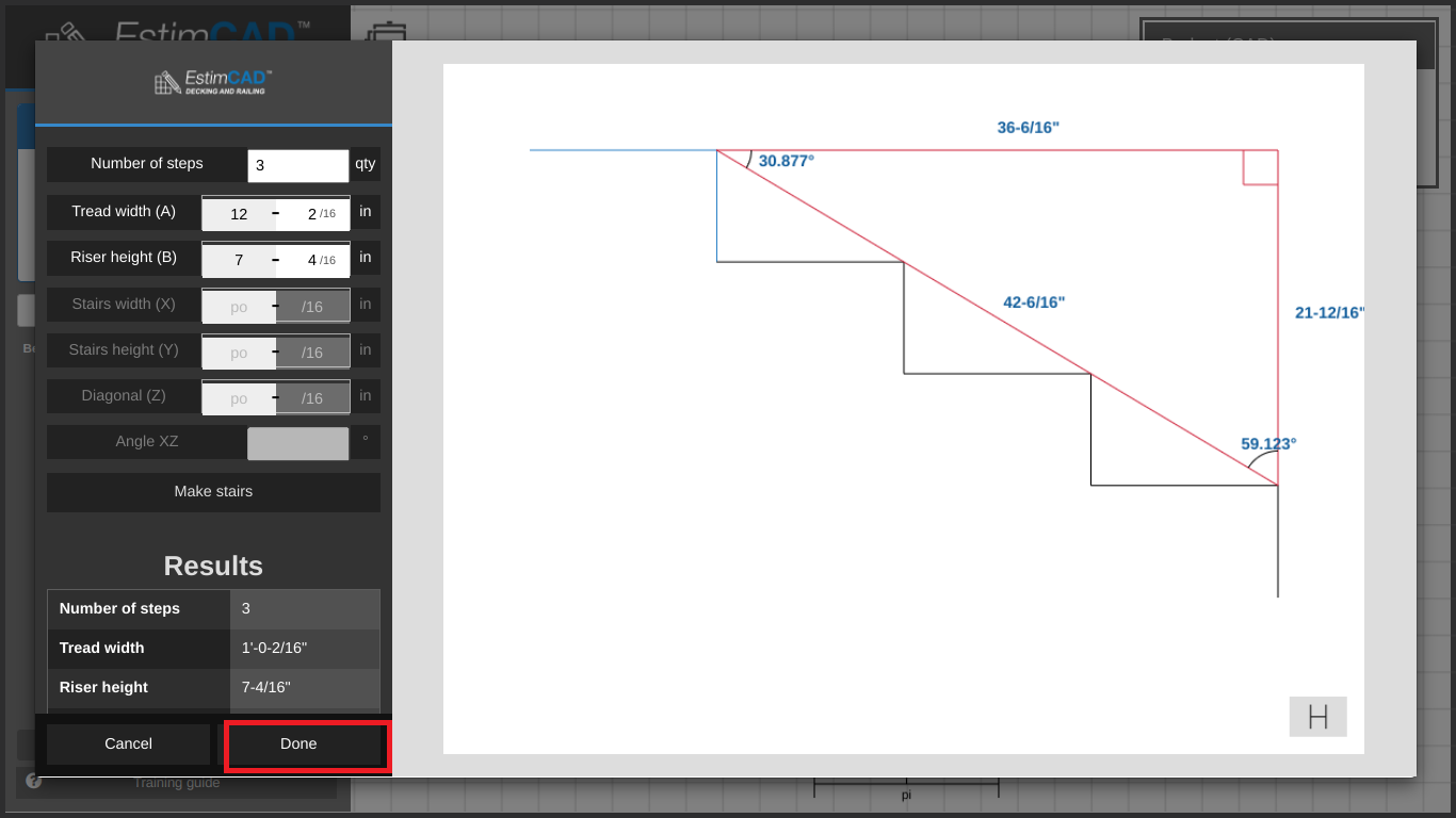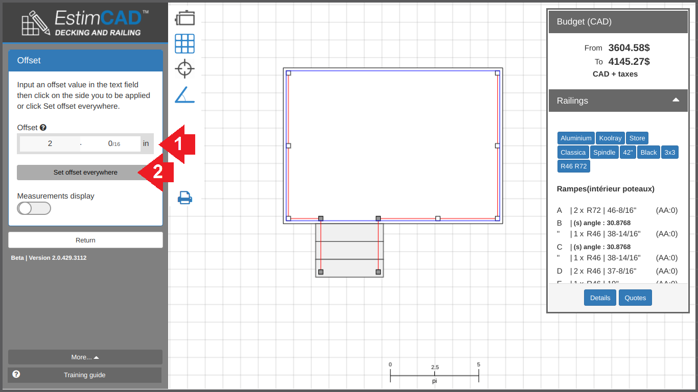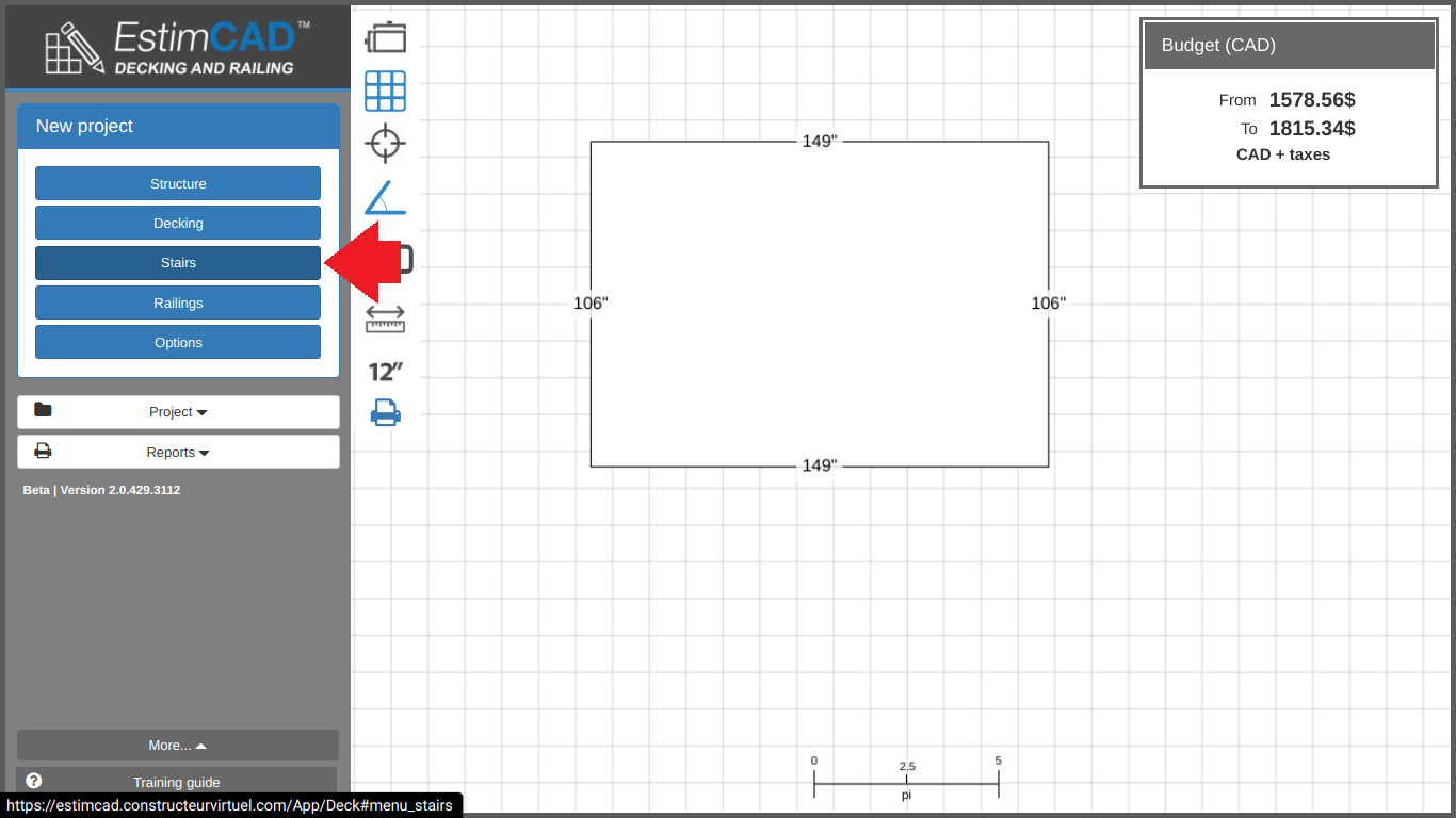 Arrow 3 = Once the existing measurements are registered, click the "Make stairs" button.