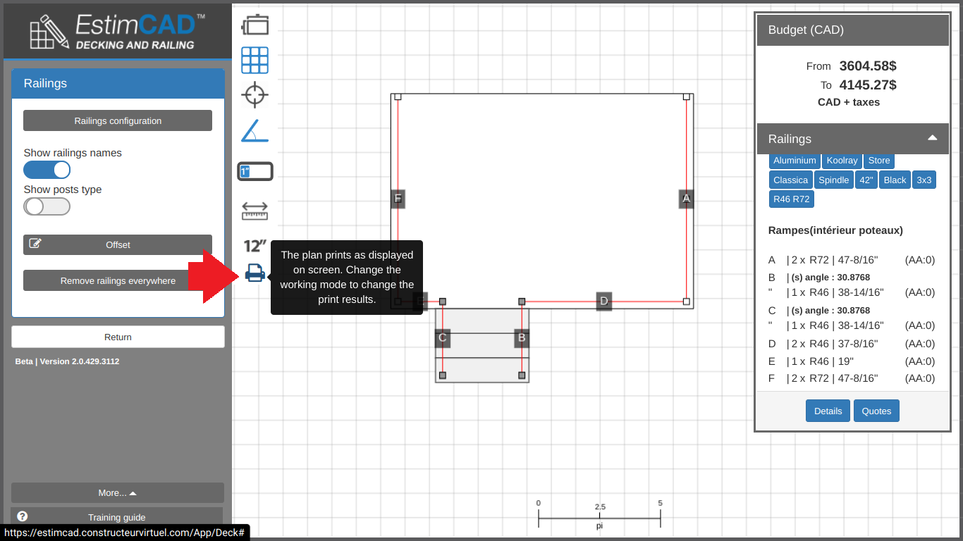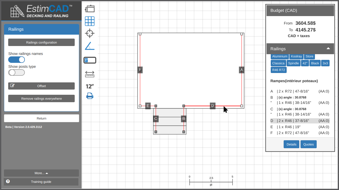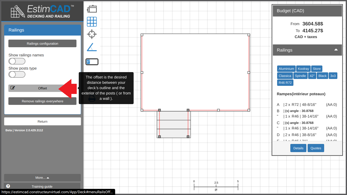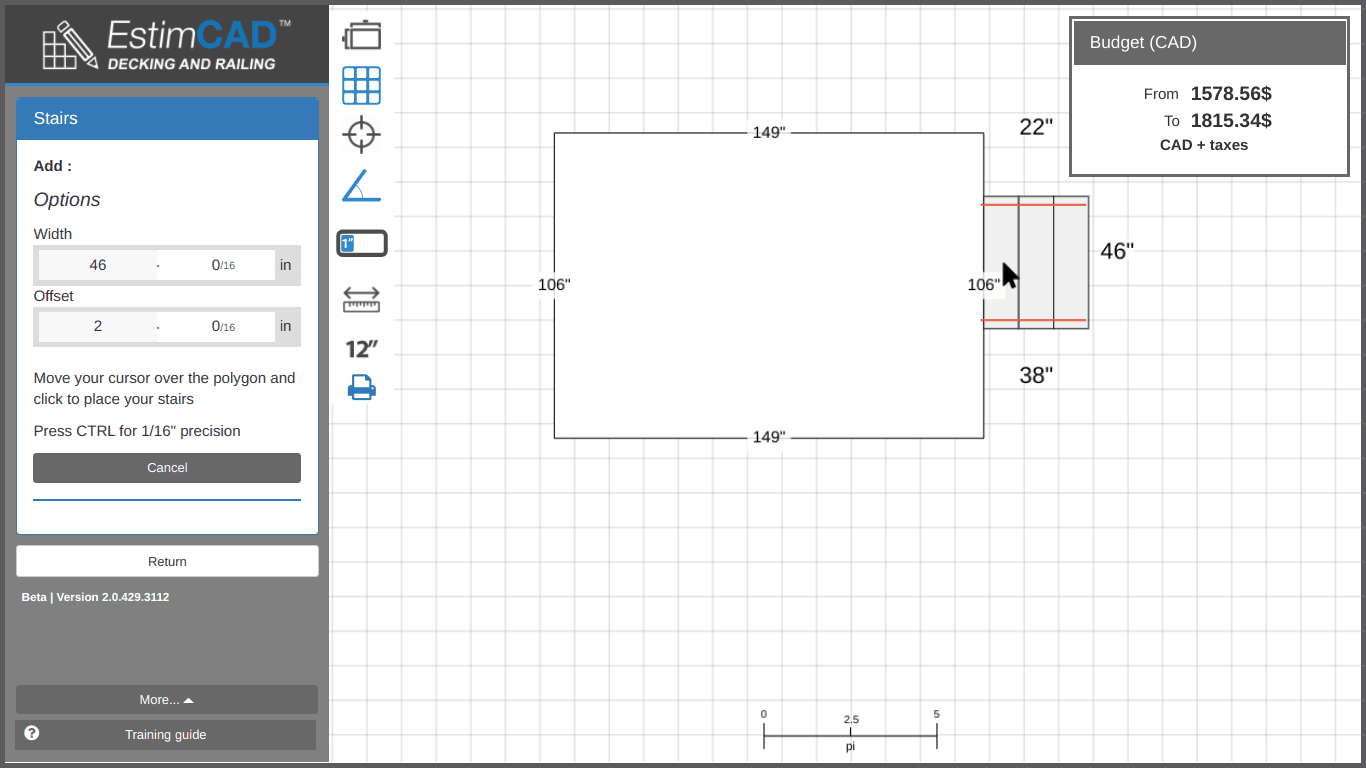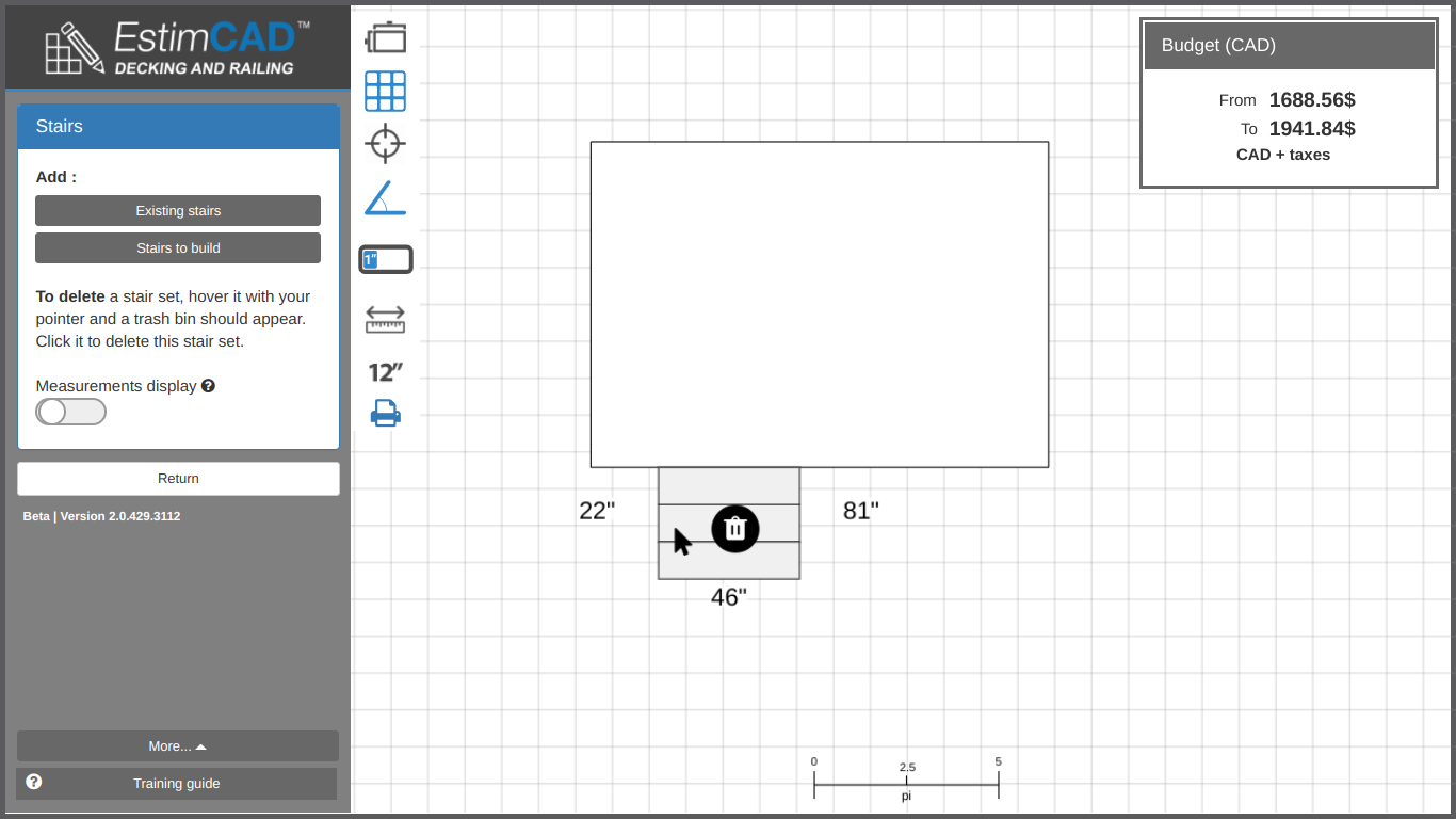 Arrow 3 = Once the existing measurements are registered, click the "Make stairs" button.